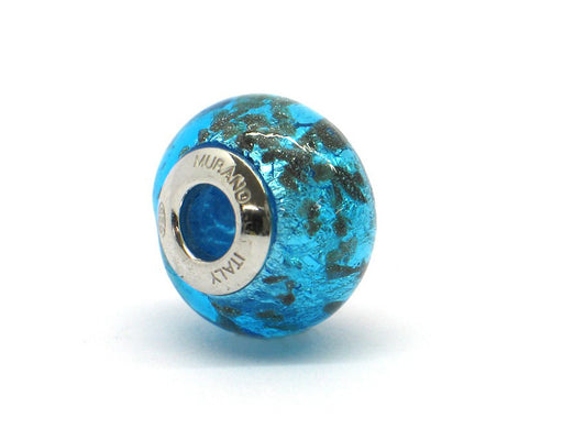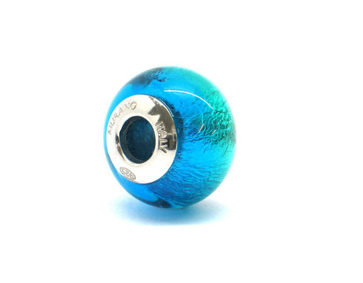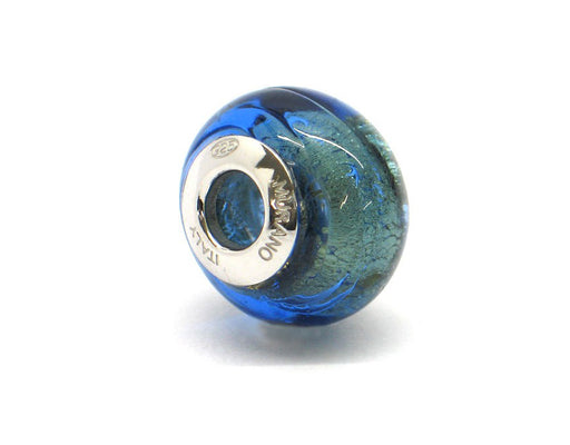 Alle gegevens bekijkenMurano glas bead - Acquamarina profonda con vortici dorati