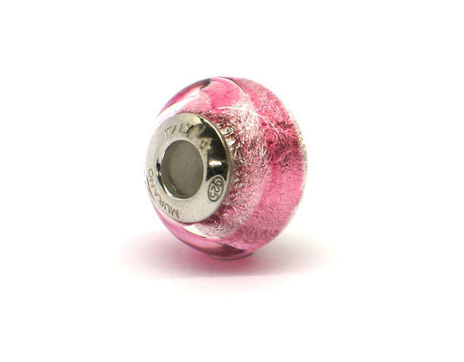Alle gegevens bekijkenMurano glas bead - Rosa con vortici dorati