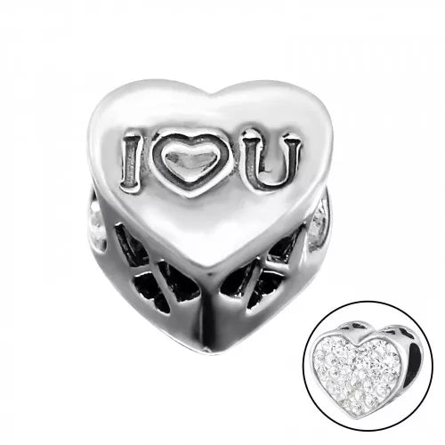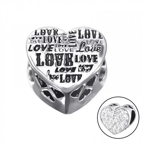 Een plaaatje van een bead! Aan de ene kant straalt de love je tegemoet. En aan de andere kant vormen 27 zirkonia's een bijzondere glinstering aan j...