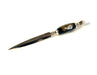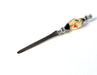 Deze speelse, handgemaakte briefopener heeft een heft van bruin Murano glas, versierd met prachtige rode en zwarte swirls. Handgemaakt!