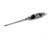 Deze speelse, handgemaakte briefopener heeft een heft van doorzichtig Murano glas, versierd met prachtige groene poles en geverfde Millefiori bloemen. Handgemaakt!