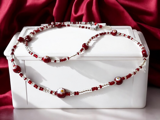 Breng echte Italiaanse feestmagie in huis met deze handgemaakte Murano glas kerstbal. De diepe rode kleur, verfijnde kleurrijke spikkels en zes kle...